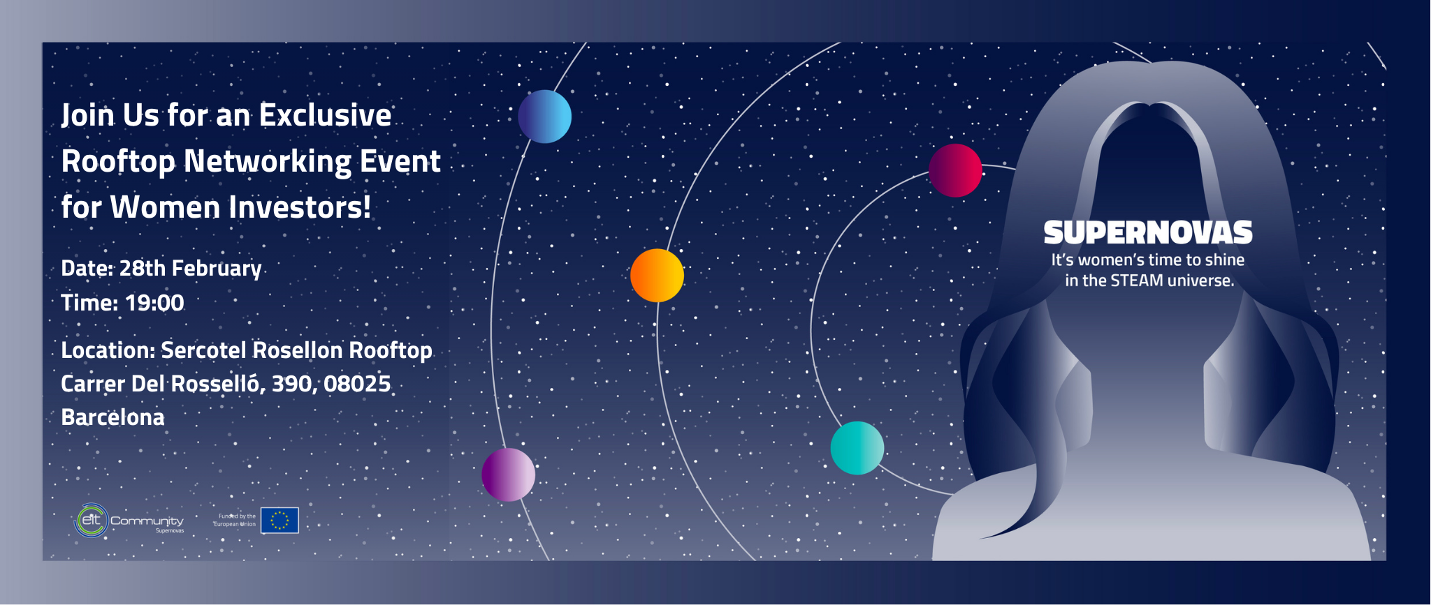 Get ready for an unforgettable evening of connection, celebration, and empowerment! We are thrilled to invite you to an exclusive Supernovas rooftop event at Sercotel Rosellon, with the best views of the Sagrada Familia in Barcelona, on the 28th of February to enjoy a pleasant afterwork drink with other great female investors.