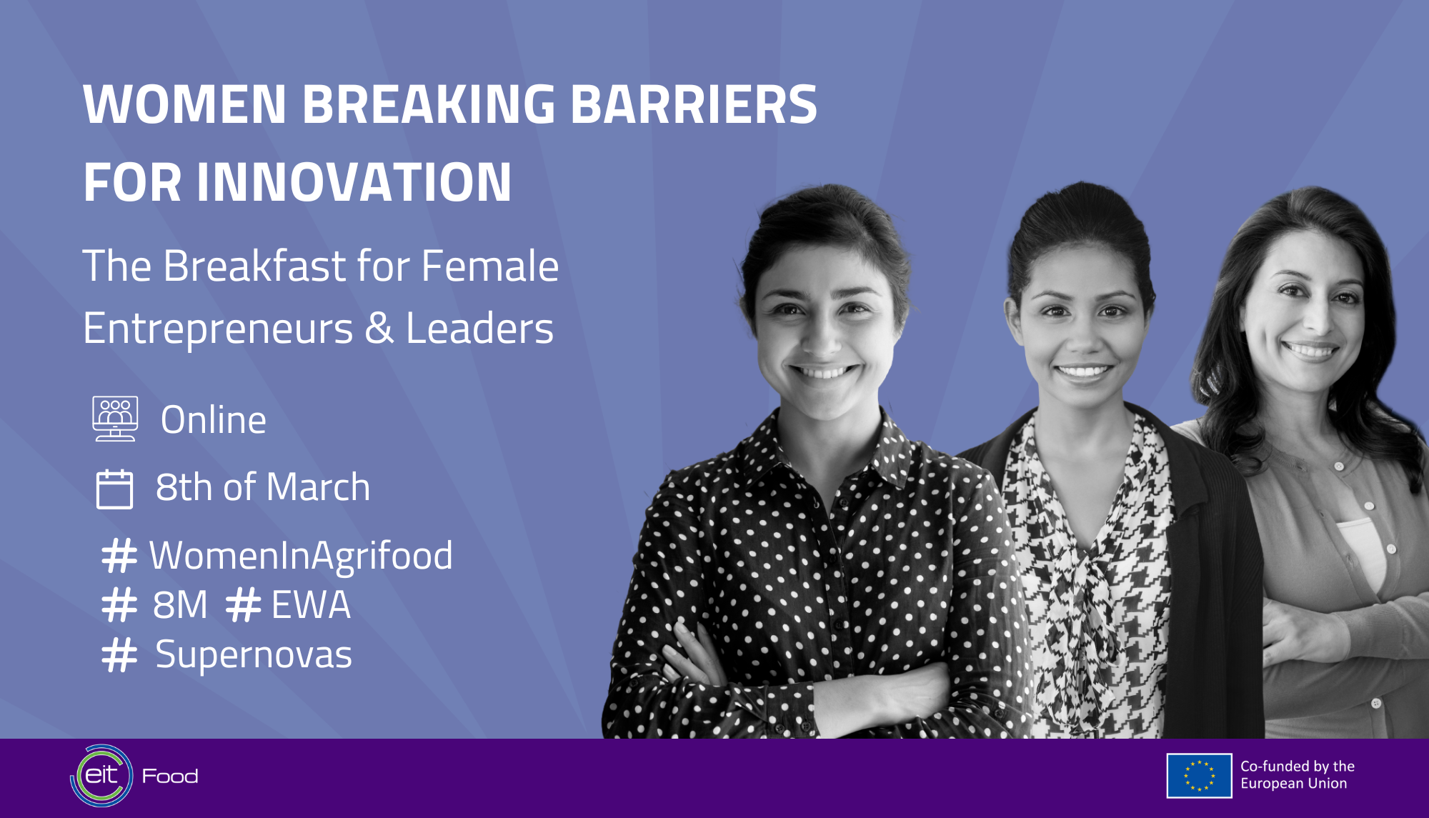 On the International Women’s Day, at EIT Food we want to bring special attention to the work we have done since our foundation to empower woman-led startups and empower new role models across the sector that inspire future generations. Join us at the 'Women Breaking Barriers For Innovation' event, the meeting point of female entrepreneurs, leaders and institutions to discuss and understand the work path that EIT Food has established towards achieving the 2020-2025 Gender Strategy promoted by the European Commission.
